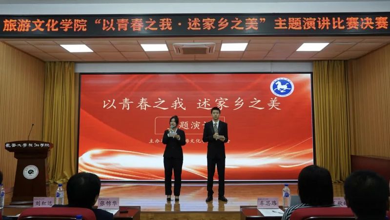 为深入开展学习贯彻习近平新时代中国特色社会主义思想主题教育,扎实推进校园文化建设,培养广大学生“弘扬家乡”的意识,丰富学生校园文化生活,提高同学们的思辨能力和口才表达能力。旅游文化学院于11月20日下午在筑梦报告厅举办“家乡之美”主题演讲比赛决赛。参与本次活动的有旅游文化学院团委书记兼学生工作办公室主任张锦华、旅游文化学院23级辅导员车思路、22级辅导员刘红远、21级辅导员王秋皓及学院团学组织主席团成员。活动由张德霖和冯艳瑜主持。