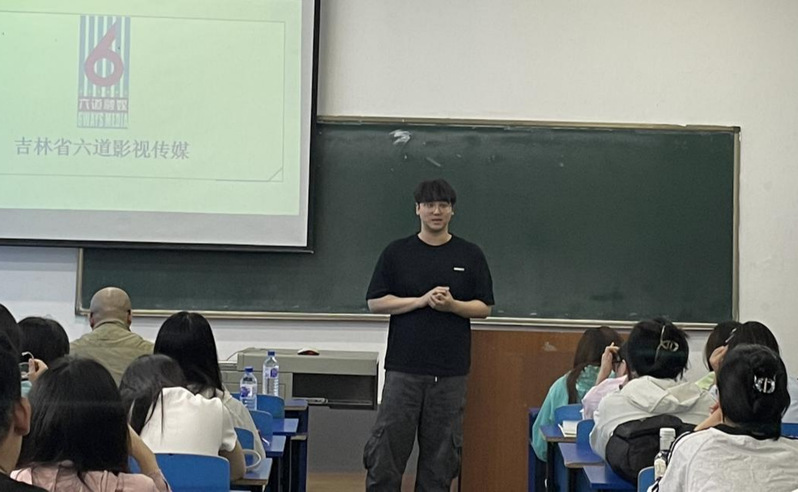 随后,吉林省著名主持人王主玉(老王)分享了自己这一路走来的“酸甜苦辣”,回忆自己的求学时光,畅谈自己的心路历程,对学生成长提出建议;详细分析了自己参与策划的吉林大安辽金文化旅游节、大型沉浸式演艺辽金干古情、吉林省金龄春晚、长白山国际情侣节、相亲交友栏目《全城热恋》等案例。最后他满怀激情说:“融媒体时代呼唤青春的融媒体人才,2024六道融媒正在谋划更大的蓝图,呼唤青春的你,加入融媒体青春战队!”讲座现场王老师侃侃而谈,激情澎湃、赢得同学阵阵掌声。在讲座过程中,学生们积极提问,王老师耐心解答。
