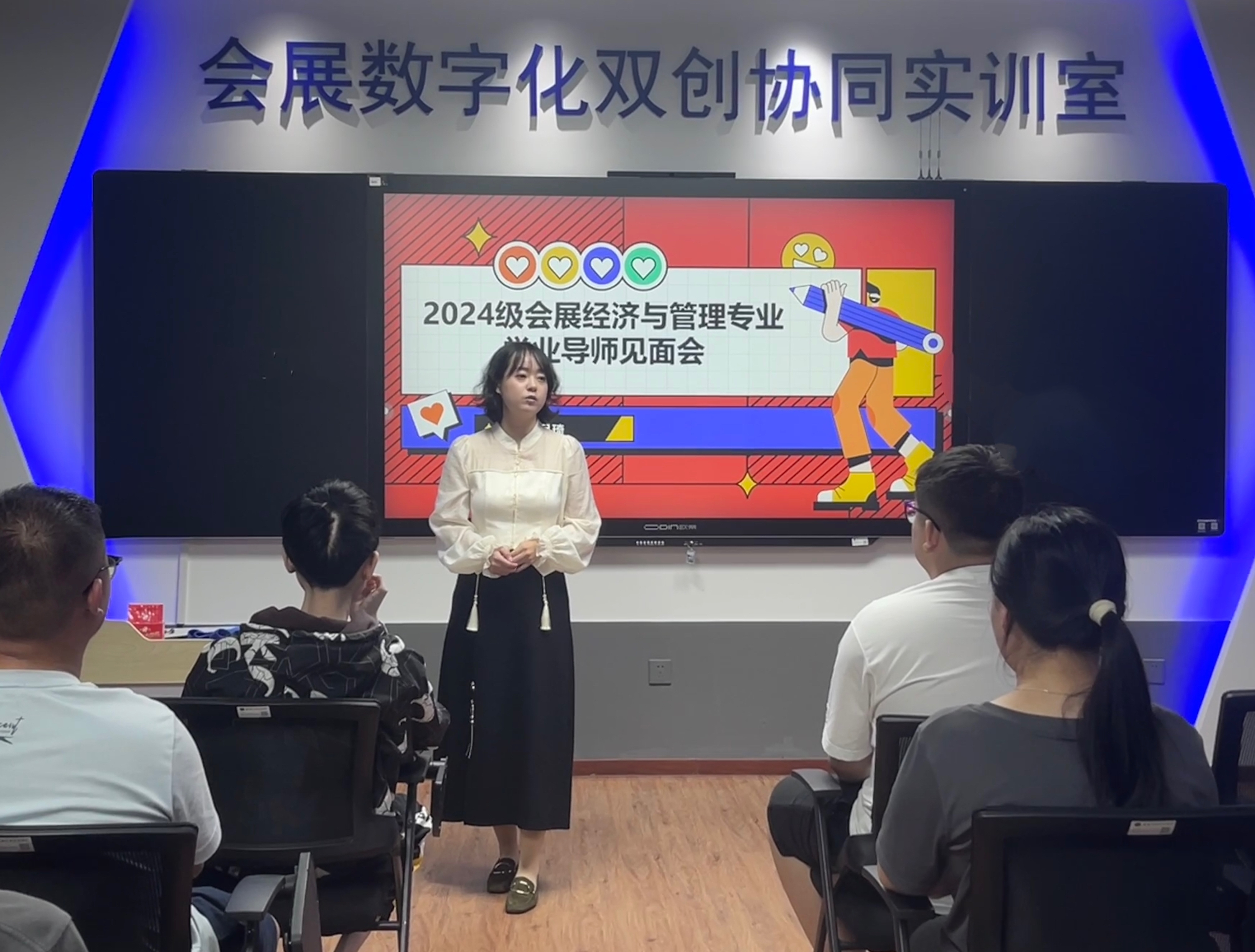 为了帮助2024级新生更好了解专业教学,开启新的校园生活,会展经济与管理专业于9月5日召开了2024级新生专业介绍会及学业导师见面会,会议由专业带头人麻松主持,2024级学业导师吕琦及2024级新生参加。