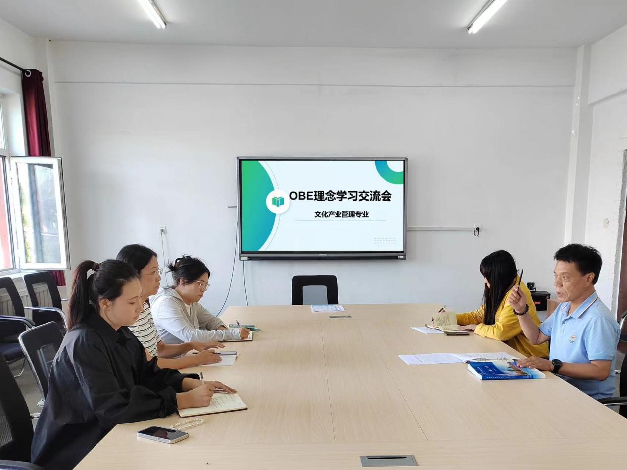 为深入贯彻学习OBE教育理念,提升本专业教学质量,文化产业管理教研室于9月5日下午召开了OBE理念专题学习研讨会。会议主要围绕OBE教育理念的学习,优化课程设计,提升教学效率和质量。会议由姜雪主持,学科带头人张春城重点讲解,专业教师全体教师参加了会议。
