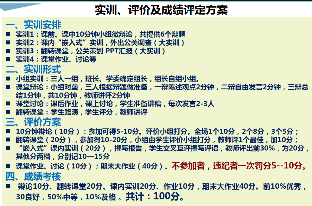 图2.《旅游公共关系》课程《实训、评价及成绩评定方案》