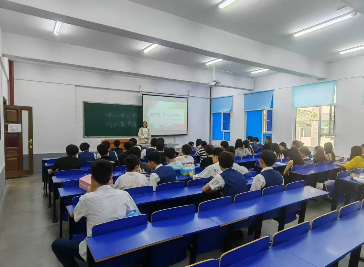 为帮助学生们尽快调整学习状态树立正确的价值观,明确学习目标,做好新学期规划,8月26日旅游文化学院全体辅导在教学楼对2022、23级学生开展“开学第一课”主题班会。