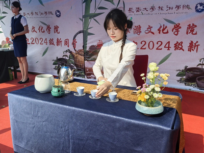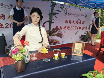 同时,旅游文化学院为新生及新生家长提供了特色茶艺表演