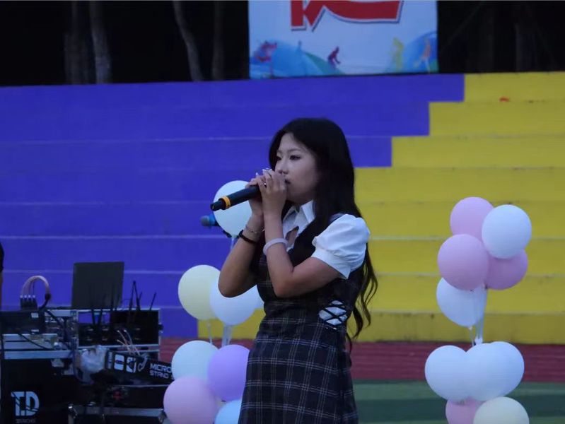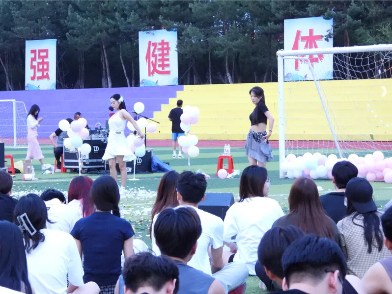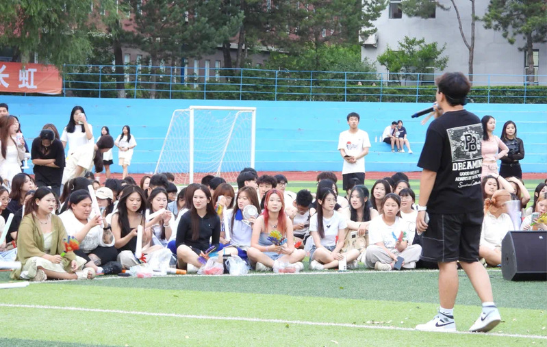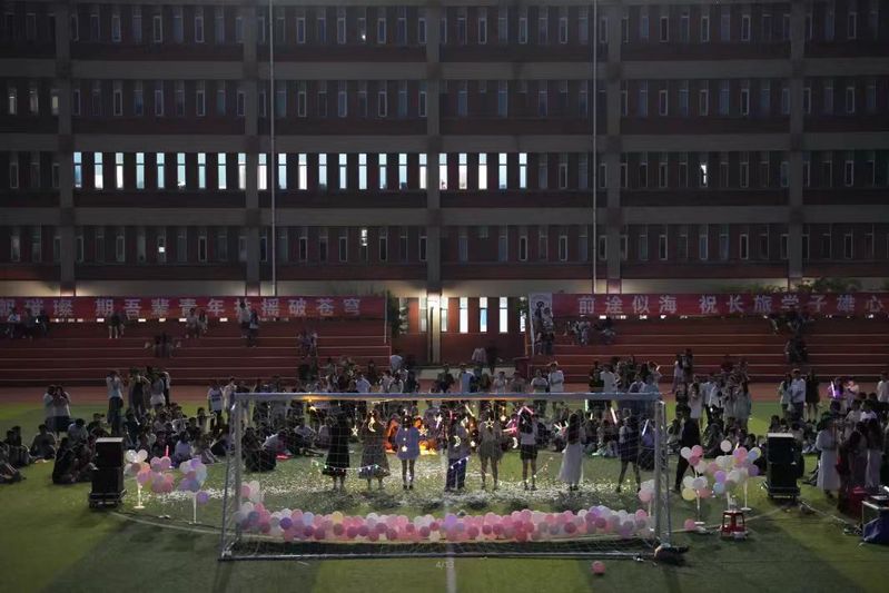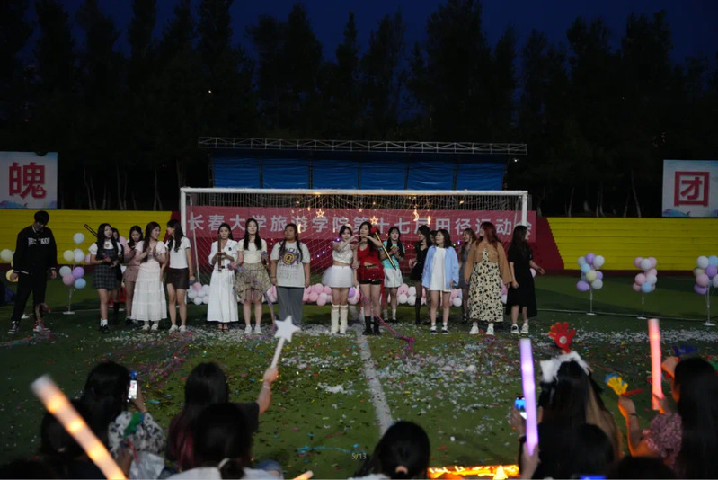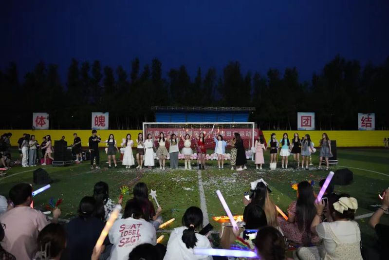 夜色渐浓,绚丽的灯光照亮舞台,操场愈加熙攘了起来。天幕灯光前,那是一张张明亮灿烂的面孔,葆有着年轻的神采,眼角满是藏不住的青春活力。