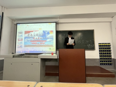 为积极响应国家“培养青年责任意识与担当精神”的号召,大力提升同学们的爱校荣校情怀,增强集体荣誉感与使命感旅游文化学院于1120精心组织了一场以“青春与校同行 爱校荣校共担当”为主题的团支书讲团课活动。此次活动由2414团支书担任主讲人,智慧团建部门同学积极参与,由陈梦奇同学主持,现场气氛热烈,取得了良好的教育效果。