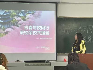 活动伊始,主持人强调了学校发展与学生个人成长之间的紧密联系,鼓励每一位同学以实际行动践行爱校荣校精神。他提到:“学校是我们成长的摇篮,我们每个人都有责任和义务为学校的发展贡献自己的力量。”随后,各班团支书通过演讲PPT形式,以校史故事为切入点,通过讲述学校的发展历程、历任校长的卓越贡献以及校友们的励志事迹,带领同学们回溯了学校一路走来的光辉岁月,深刻领略了学校深厚的文化底蕴与办学精神。表达了对学校的热爱和对未来的憧憬,承诺将用自己的实际行动为学校的发展贡献力量。