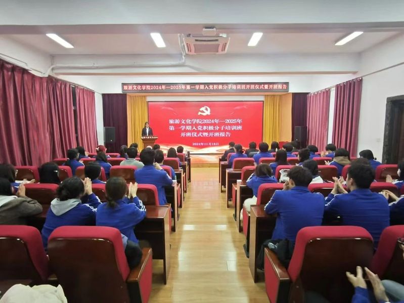 为加强对入党积极分子的培养和教育,提高入党积极分子的政治素质和理论水平。10月24日,旅游文化学院在校筑梦报告厅开展了旅游文化学院2024年-2025年第一学期入党积极分子培训班开班仪式。旅游文化学院党总支书记凤龙、团委书记张锦华、马克思主义学院教师刘云臣、旅游文化学院全体辅导员、入党积极分子及青马班学员代表参加会议。会议由学院党总支组织员英冀主持。