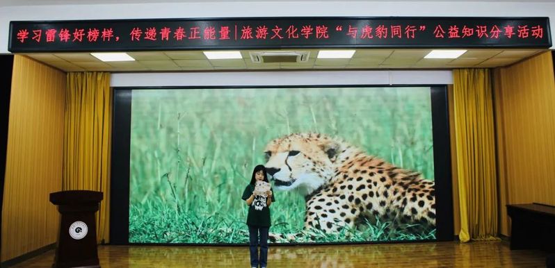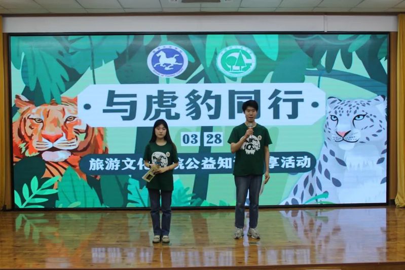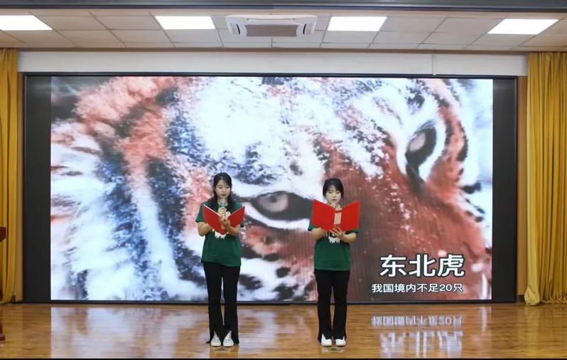 紧接着,苏羽桥和刘薇两名学生志愿者对虎豹知识的进行分享,让大家了解到野生东北虎豹保护区内生物多样性对虎豹生存的影响,增加了同学们生态保护、生物多样性保护的知识的储备及参与积极性,让更多同学参与到“与虎豹同行,走进自然”的生态保护之中。