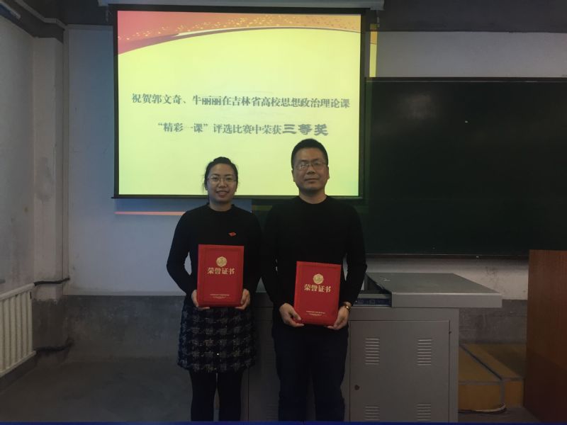 郭文奇、牛丽丽分别荣获《毛泽东思想和中国特色社会主义理论体系概论》、《马克思主义基本原理概论》三等奖。