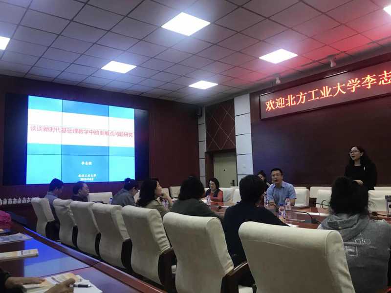 李志强教授针对新教材的修改情况和重点内容进行讲解。会后,李教授与教师代表对教学中的问题进行热烈讨论。