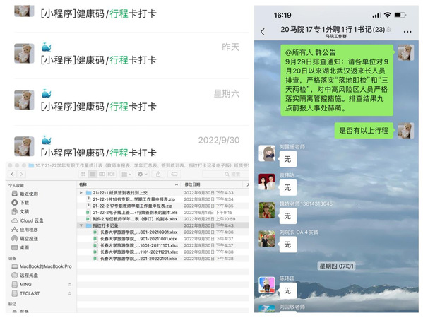 疫情期间,马铭晗同志负责马克思主义学院教职工的信息统计工作。从收集外省市返长人员统计表到学校新冠肺炎防控情况统计表,再到教职工每日上传双码、填报钉钉,她始终一丝不苟,认真谨慎。她已记不清收集了多少数据,上报了多少表格。每天在叮嘱老师上课、填报相关表格任务和催促大家上报数据之间循环往复。起早、熬夜是常事,坚守是常态,但她毫无怨言,默默坚守。