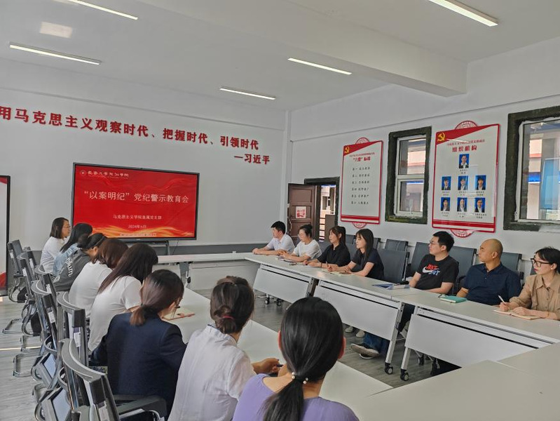 6月13日下午,马克思主义学院直属党支部召开“以案明纪”党纪学习教育会。会议深入学习贯彻习近平总书记关于全面加强党的纪律建设的重要论述,围绕近年来高校系统违纪违法的典型案例开展党纪学习教育。会议由直属党支部副书记魏娇主持,支部全体党员参加。