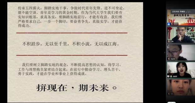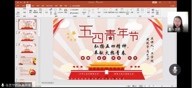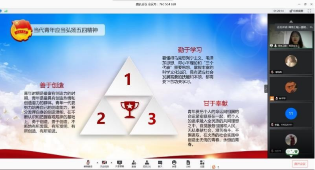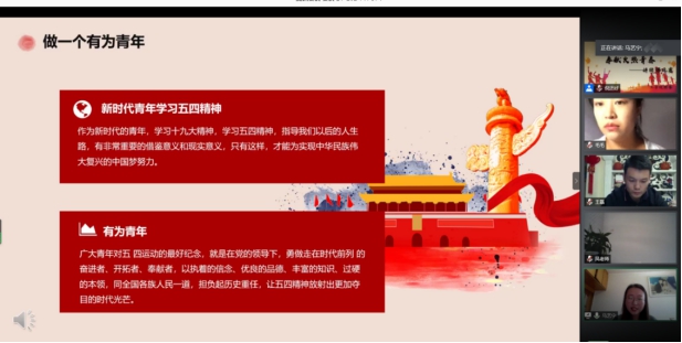 本次线上团支书讲团课大赛的圆满展开,弘扬了“五四”精神,充分展现了同学们朝气蓬勃、锐意进取的精神风貌,增强了责任感和使命感,为实现中华民族伟大复兴中国梦不懈奋斗。