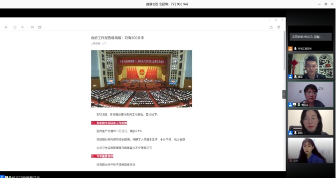 在会议中部分学生代表发言,同学们对本次两会精神的感悟各抒己见。依次分享两会心得。大家虽然居家进行会议,但依然热情高涨,踊跃发言,收获颇丰。