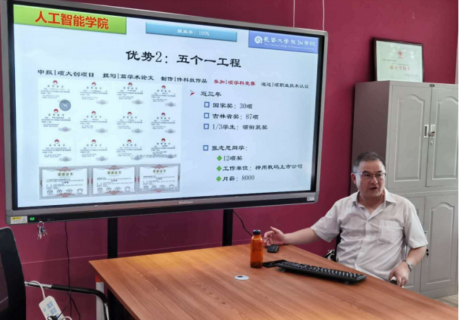 人工智能学院开设了网络工程、物联网工程、数据科学与大数据、人工智能4各专业,是国家重点发展学科。学院秉承“以赛促学、以赛促教、以赛促创”的先进理念,依据“工程认证”的培养目标及要求,推出“五个一工程”,即在校期间每个学生申报1项大创项目、撰写1篇学术论文、制作1件科技作品、参加1项学科竞赛、通过1项职业技能认证”。近三年,荣获国家级奖项30余项,吉林省奖项87项,1/3学生领衔获奖。