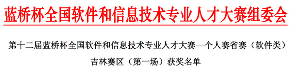 近日,第十二届蓝桥杯全国软件和信息技术专业人才大赛---吉林赛区比赛成功举办。金沙官网人工智能学院学生常浩然与来自吉林大学、东北师范大学等省内高校学生同台竞技,荣获个人赛省赛(软件类)吉林赛区三等奖。