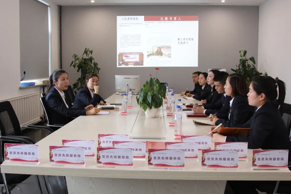 王磊就如何贯彻落实十九届六中全会精神,并以开展“三亮、三比、三争”活动为载体,推动发挥教师党员和学生党员的先锋模范带头作用进行了汇报。
