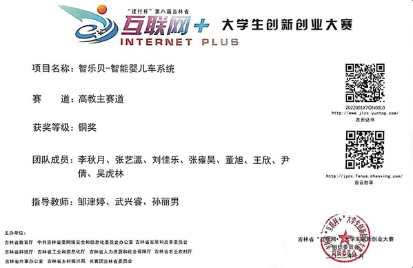 近日,“建行杯”第八届吉林省“互联网+”大学生创新创业大赛落下帷幕。我院参赛团队喜获佳绩,获得高教主赛道铜奖1项,展示了我院学子扎实的学术功底和创新能力。