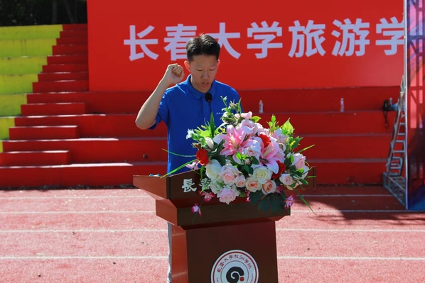 人工智能学院院长刘富宣布人工智能学院第一届趣味运动会开幕