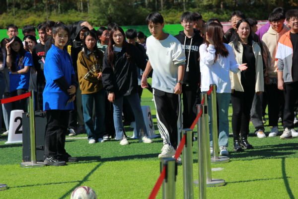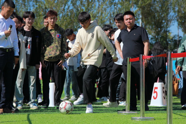 开幕式结束后,杨威为第一项比赛“足球保龄球”开球。比赛现场气氛紧张激烈而又趣味十足,各队队员配合默契、相互鼓励,展现了高超的球技,师生充分感受到了运动的快乐,营造了积极向上的校园体育文化氛围。