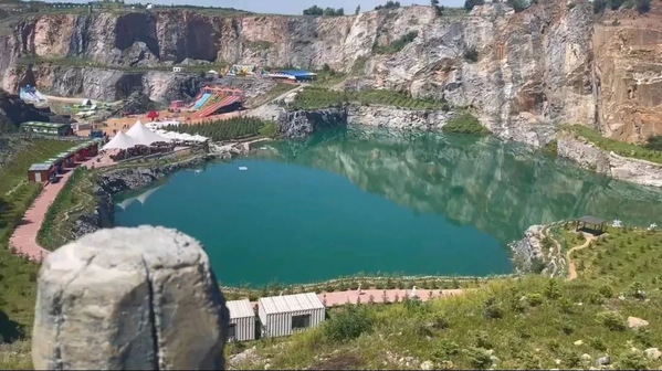 最后,实践队来到四平市梨树县孟家岭镇“小天池”景区,体会活用地理遗存,力行生态修复的小天池景观的美妙之处。旧矿山与自然环境的结合之美,吸引着人们争相前来体验,游玩,也为实践团队理解习近平总书记的“绿水青山就是金山银山”和关于乡村振兴的有关重要论述带来了印象深刻的案例。