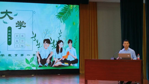 随后,人工智能学院党总支书记王磊围绕大学与高中的区别、大学对人生的意义及如何过好大学生活三个方面为2023级全体本科新生上了一堂精彩的入学教育课。王磊通过多种现实案例,为新生详细阐述了大学阶段和中学阶段学习模式的区别。他希望同学们能够走好从学校到社会的过渡阶段,充分发挥主观能动性,努力培养自身兴趣,做到快乐学习。