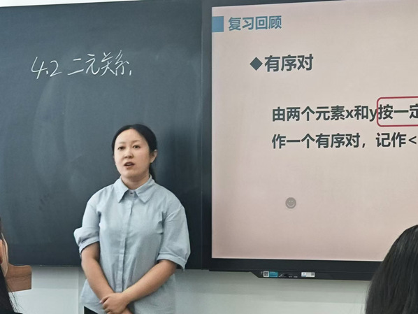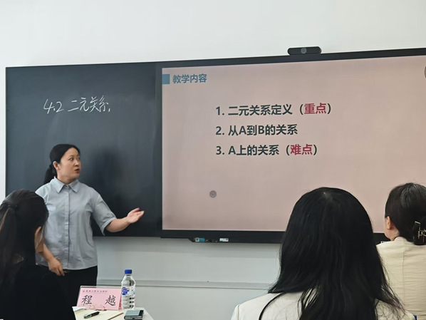 在紧张而有序的考核过程中,蔡天缘老师以其独特的教学风格和深厚的专业知识,为现场观众带来了一场精彩纷呈的教学展示。她所教授的《离散数学》课程,是数据科学与大数据技术专业中的核心课程之一,对于培养学生的逻辑思维、编程能力及数据分析技能至关重要。蔡老师的课程设计巧妙融合了理论与实践,通过引入实际案例和前沿技术,使抽象的算法概念变得生动具体。她利用动画演示、互动问答等多种教学手段,有效激发了学生的学习兴趣和参与度。