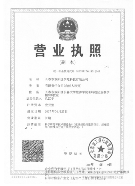 2017.4:长春市双阳区学苑科技有限公司,法人:孔江宁-网络1611001。