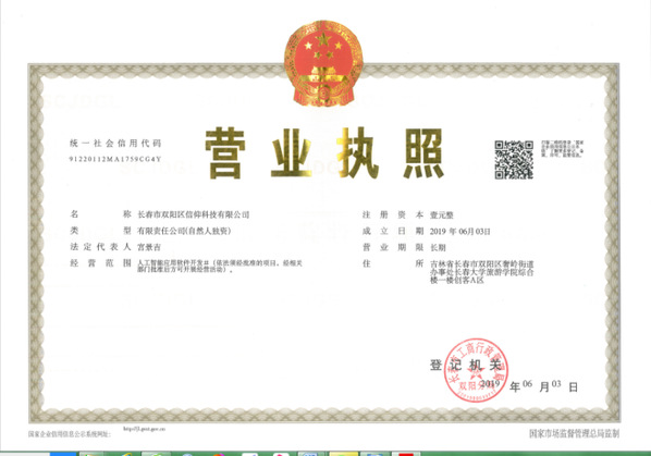 2019.6:长春市双阳区信仰科技有限公司,法人:宫景吉-网络1860601。
