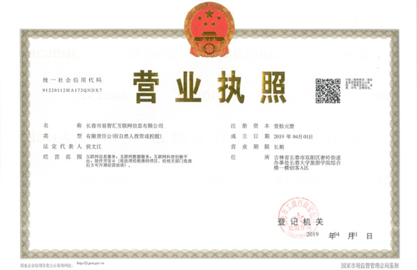 2019.4:长春市易智慧互联网信息有限公司,法人:侯文江-网络1760601。