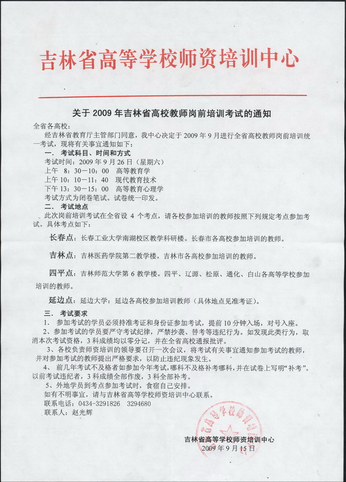 《关于2009年吉林省高校教师岗前培训考试的通知》