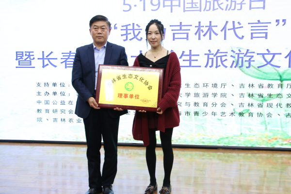 随后,吉林省生态文明网副总编辑、吉林省生态文化协会秘书长李珺凌授予学校“吉林省生态文化协会理事单位”牌匾,贺柏平代表学校接受牌匾。