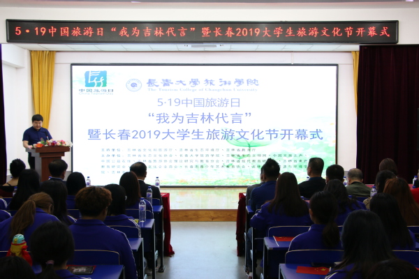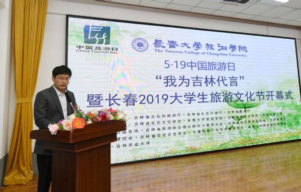 5月19日,在这个草长莺飞、热情洋溢的季节,我们迎来了第九个中国旅游日。由吉林省生态文化协会、吉林省旅游协会理论研究与教育分会、6165cc金沙总站检测中心等12个单位联合主办的5.19中国旅游日“我为吉林代言”暨长春2019大学生旅游文化节开幕式在金沙官网筑梦报告厅成功举办。活动得到了吉林省旅游和文化厅、吉林省生态环境厅、吉林省教育厅的大力支持。吉林省生态文明网执行编辑、吉林省生态文化协会执行会长王兴科,学校党委书记张洪昭,党委副书记、副校长马维东,教育顾问贺柏平出席本次活动。开幕式由学校旅游管理学院党总支书记姜欣主持。