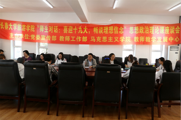 为进一步提高学生思想政治理论课的获得感,促进金沙官网思想政治理论课教学水平和教学质量的提升,了解学生对思想政治理论课的意见和建议,马克思主义学院于9月21日下午1时在行政楼会议室组织召开了“师生对话:喜迎十九大,畅谈理想信念”思想政治理论课座谈会。马克思主义学院、党委宣传部、教师工作部、教师教学发展中心等相关部门负责人及教师代表、学生代表参加了座谈会并发言。会议由马克思主义学院办公室主任郭文奇主持。