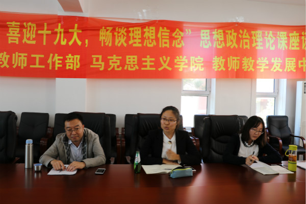 思想道德修养与法律基础课教师杜颖在发言时说,“同学们的发言,不仅有感悟,也有建议,我非常感动!针对同学们提出的建议,我在日后的教学中会多加注意,首先,努力做到以学生为中心,课程环节设置更加贴近学生,了解学生的想法以及关注的热点,增加思政课的吸引力;其次,同学们提到了在思政课教学中增加实践环节,我觉得这个建议很好,在以后的课堂上我会注意多安排一些实践环节。”