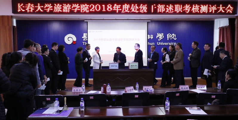 12月25日,金沙官网2018年度处级干部述职考核测评大会在行政楼三楼报告厅举行。参加会议的人员有校领导班子全体成员,校长助理、处级干部、部分副教授及以上职称的教师代表、民主党派代表。