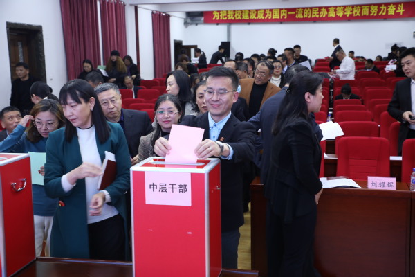 述职后,大会通过不记名投票的方式开展民主测评,评价学校中层干部和处级单位的工作情况,评选处级单位先进集体。与会的全体校领导、校长助理、中层干部、教师代表、民主党派代表、工勤人员代表共79人进行了投票。