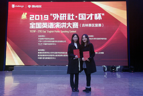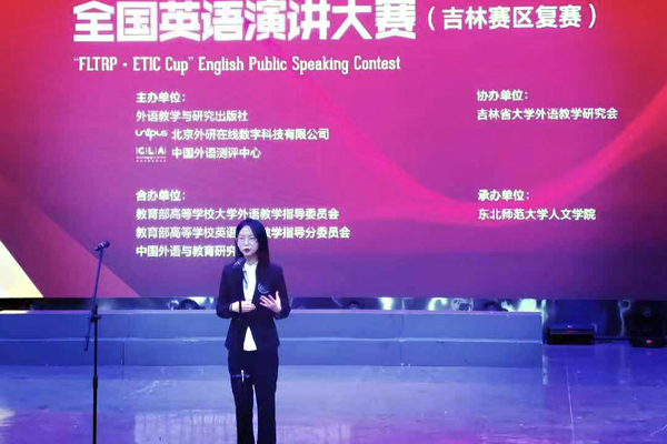 2019“外研社·国才杯”全国英语演讲大赛由教育部高等学校大学外语教学指导委员会、中国外语与教育研究中心、外语教学与研究出版社等多家单位共同举办。来自我省40余所高校的42名选手参加了吉林赛区的比赛。比赛分为定题演讲、即兴演讲、回答评委提问等环节。刘春蕾同学凭借饱满的精神、出色的英语演讲能力赢得评委的一致认可获得三等奖。