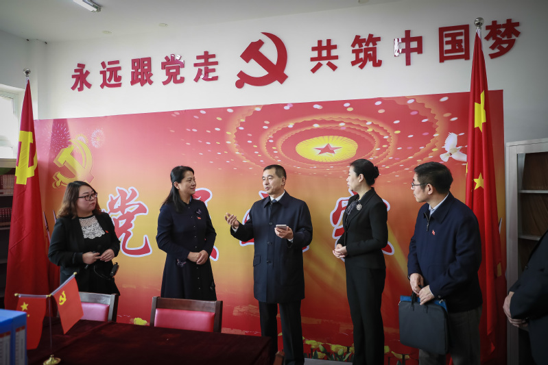 启动仪式后,与会领导实地踏查了金沙官网党建活动展厅、外国语学院和商学院党团活动室,于洪岩对金沙官网基层党建工作开展情况给予充分肯定和高度评价。