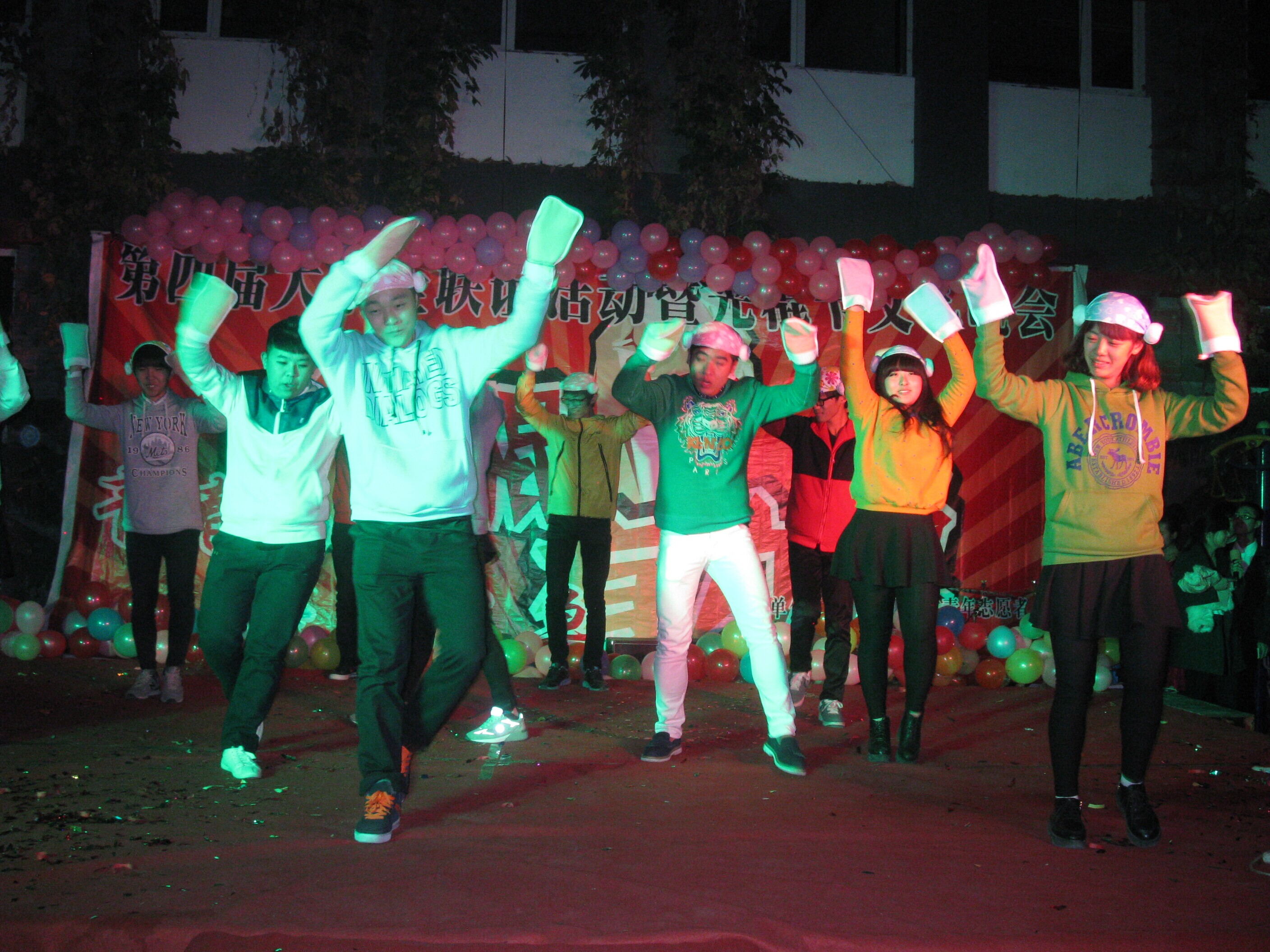 在节目开始之前,现场的气氛十分浓厚,同学们都来到羽毛球场来观看这场盛会。一个火红欢快的开场舞将现场的氛围燃烧起来,紧接着四位年轻靓丽的主持人走上舞台,晚会正式拉开了帷幕。首先,一场性感的开场舞映入眼帘,一群俊男靓女们活跃的身姿充分展现了青春的风采。一场《搞笑舞》将气氛带到了高潮,因为有主席和部长们的加入同学们的兴致有了明显的提高,搞笑的动作带动了同学们的热情,现场欢呼声一片。小品《优秀班干部》也笑料十足。我们的演员们通过自己出色的表演,向大家形象的阐述了班干部的伟大。紧接着《 阿拉伯之夜》舞蹈,一些穿着闪亮衣服的姑娘们上场了,她们一致的动作带着浓郁的民族文化。《小情歌》的歌曲串烧,动人的舞蹈,还有爽口的相声等一系列精彩的演出,都为晚会增添了浓墨重彩的一笔。最后,晚会在一首充满正能量的歌曲《让世界为你转身》中走进了尾声。伴随着主持人的声音,我们的光棍节晚会宣布圆满成功。