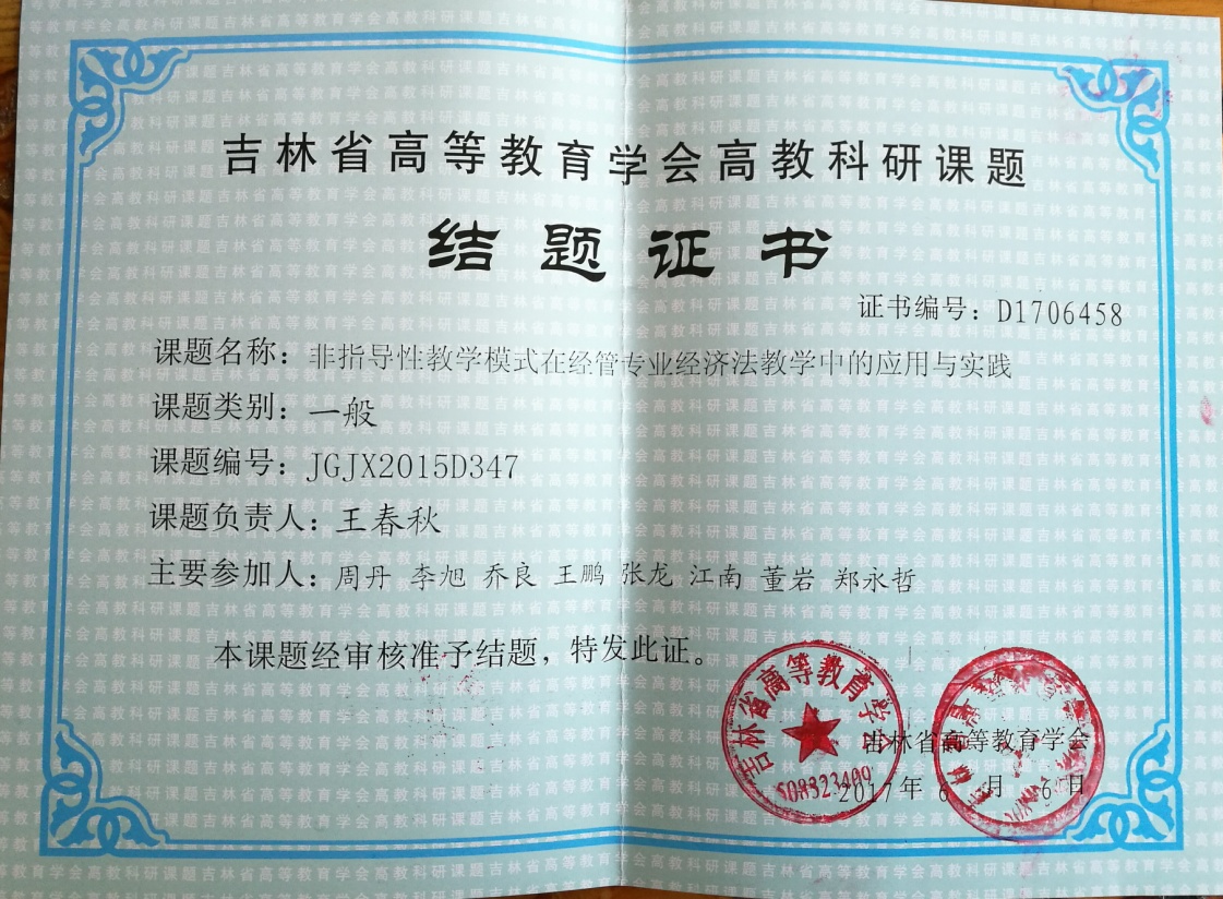 日前,吉林省高等教育学会公布了2015年度吉林省高等教育学会高教科研课题结项的通知。我院王春秋老师的课题通过审核,批准结项。