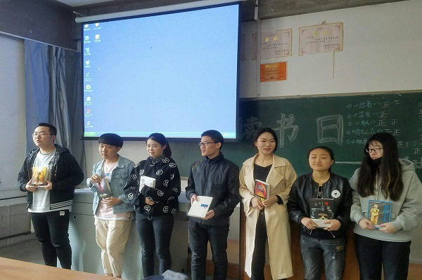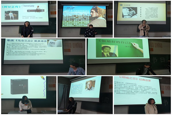 2018年4月12日在201教室,同学们进行了读书分享交流会。每组派出一名代表,声情并茂地向其他同学讲述了对本组阅读书目的所感所想。从介绍图书作者、写作背景到介绍图书写作手法、作者思想、刻画的人物形象,从世界名著到近代励志,从描写女性独立到激励少年上进,各个小组以不同角度和视野为大家展现了阅读的魅力。
