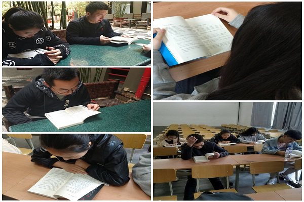2018年4月初,同学们自由组成阅读小组,每组利用课余时间选择一本喜爱的书籍阅读并进行交流分享。天井、图书馆、教室都能看到同学们阅读的身影。
