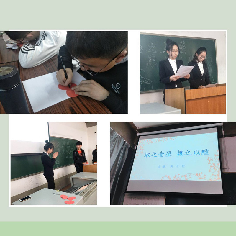 2018年4月4日,为了倡导全民感恩,营造良好的学习生活环境,商学院辅导员刘国敬老师组织16级金融一班、金融二班全体同学在教学楼353教室召开了“感之所感,恩之以情”的主题班会。