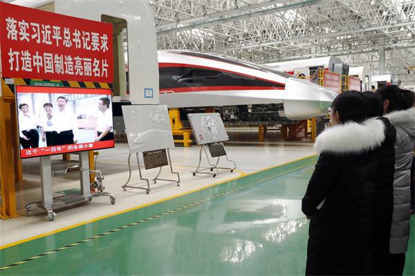 随后,在讲解员的引导下,大家沿着习总书记视察时的行进路线细致参观了高速动车组机器车间及各大机器组装车间,近距离了解和观摩了中车列车设计、制造、组装、调试的基本工序和整体流程。公司超前的发展理念、一流的研发实力、先进的管理水平、扎实的党建工作、良好的精神风貌给全体参观人员留下了深刻印象。