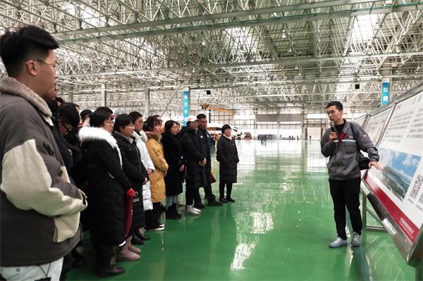 走进园区,雕刻着“严细精实”厂训的迎门巨石映入眼帘。在高速车制造基地鸟瞰图前,讲解员为大家详细介绍了公司的发展历史、业务板块、资质荣誉等总体概况,重点讲解了高速车制造基地的建设规模、生产能力、研发水平和海外业绩,让参观党员充分感受到了中车集团“中国制造”的深厚底蕴和独特魅力。