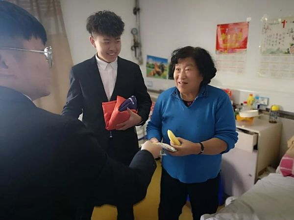 在精彩而温馨的表演结束后,志愿者们向老人们发放慰问礼品,逐一走访不方便下楼的老人,老人们非常的感动,留下了激动地泪水。志愿者们用真诚的行动换来了老人们的笑声和掌声。在活动的最后,老人们亲切地与志愿者们合影道别。