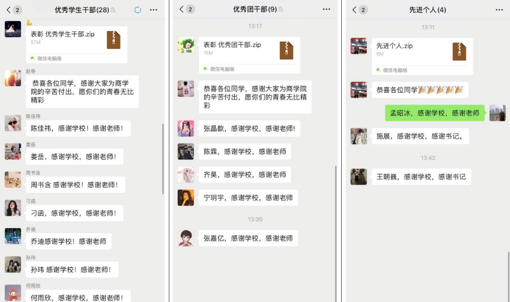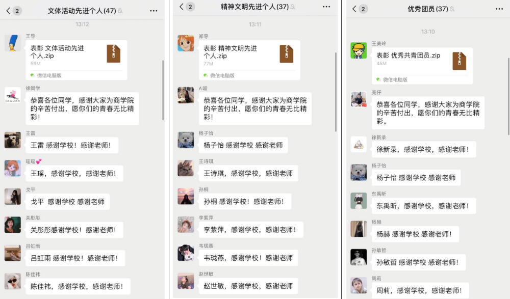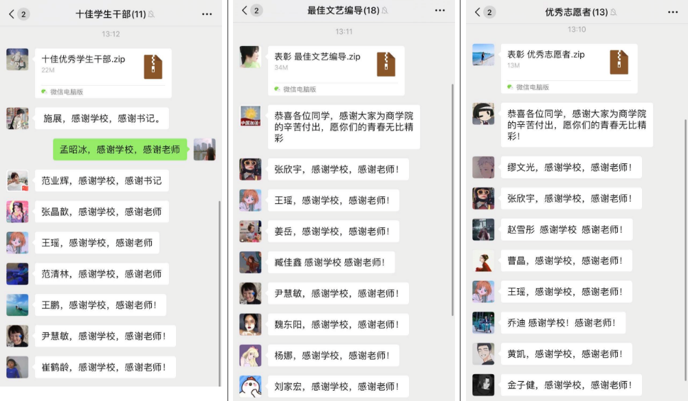 大会决定聘用孟昭冰等33名同学担任商学院2019-2020学年度学生干部,聘期自2019年7月至2020年7月。授予孟昭冰等3名同学“先进个人”称号;授予王朝巍等10名同学“十佳优秀学生干部”称号;授予张晶歆等7名同学“优秀团干部”称号;授予刘金磊等23名同学“优秀学生干部”称号;授予杨子怡等34名同学“优秀团员”称号;授予乔迪等10名同学“优秀志愿者”称号;授予王瑶等43名同学“文体活动先进个人”称号;授予周书含等33名同学“精神文明先进个人”称号;授予梁木易等15名同学“最佳文艺编导”称号。