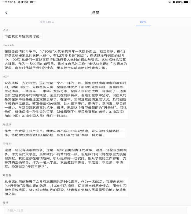首先大家学习“习近平回信勉励北京大学援鄂医疗队全体90后党员—让青春在党和人民需要的地方绽放绚丽花”内容,党员同志纷纷发表自己的学习心得。