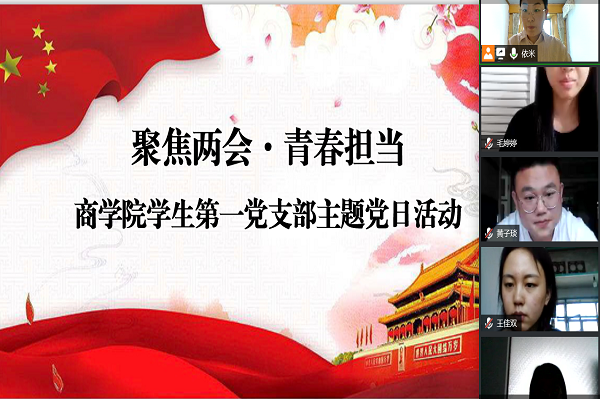 为深入学习两会精神,提高党员政治意识和服务意识,进一步加深对习近平新时代中国特色社会主义思想的政治认同、理论认同、实践认同、情感认同,全身心投入各项工作中,5月22日商学院学生第一党支部通过腾讯会议举行“聚焦两会·青春担当”主题党日活动。